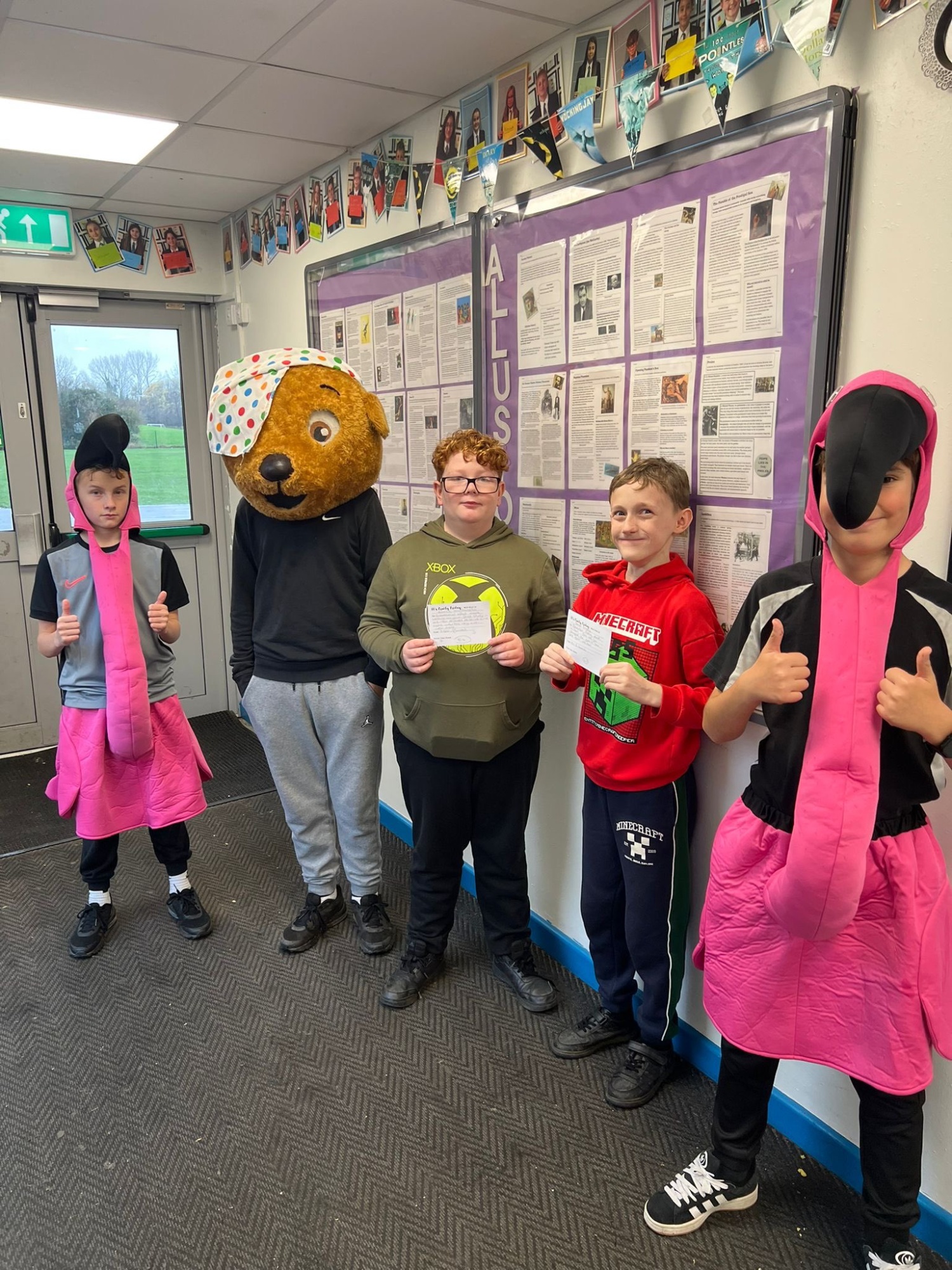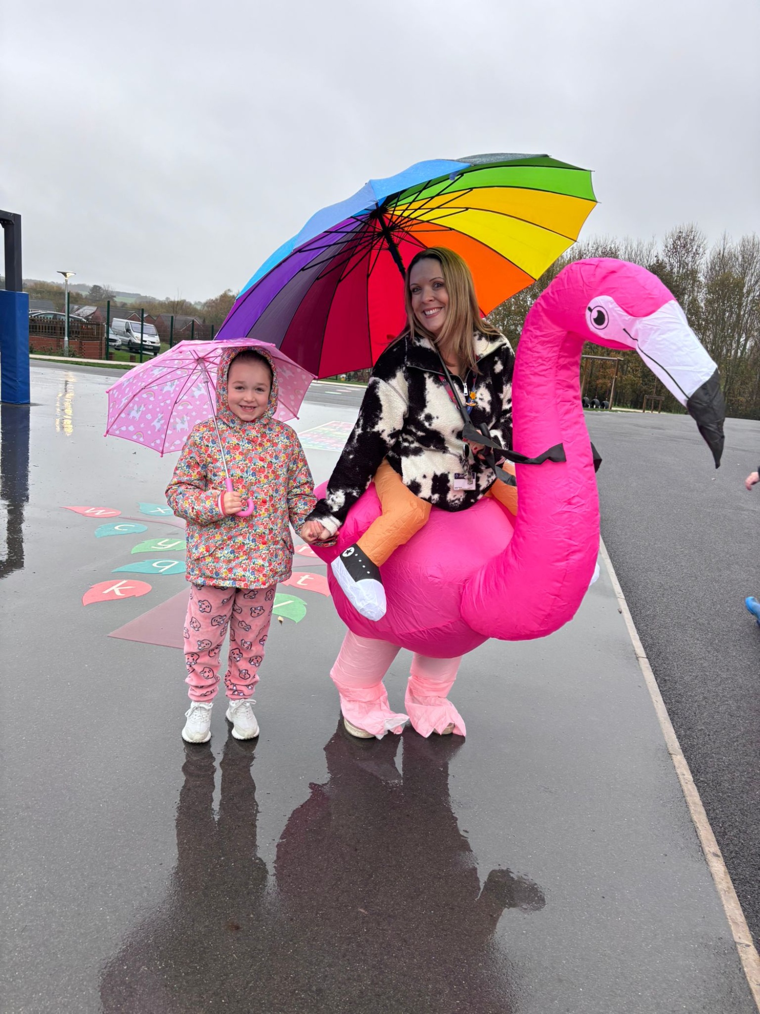 Over at Millside Spencer Academy, they hosted a dress-up day. Students wore something spotty or silly - and Principal Sophia Thorne went above and beyond, leading the way in an inflatable flamingo costume!