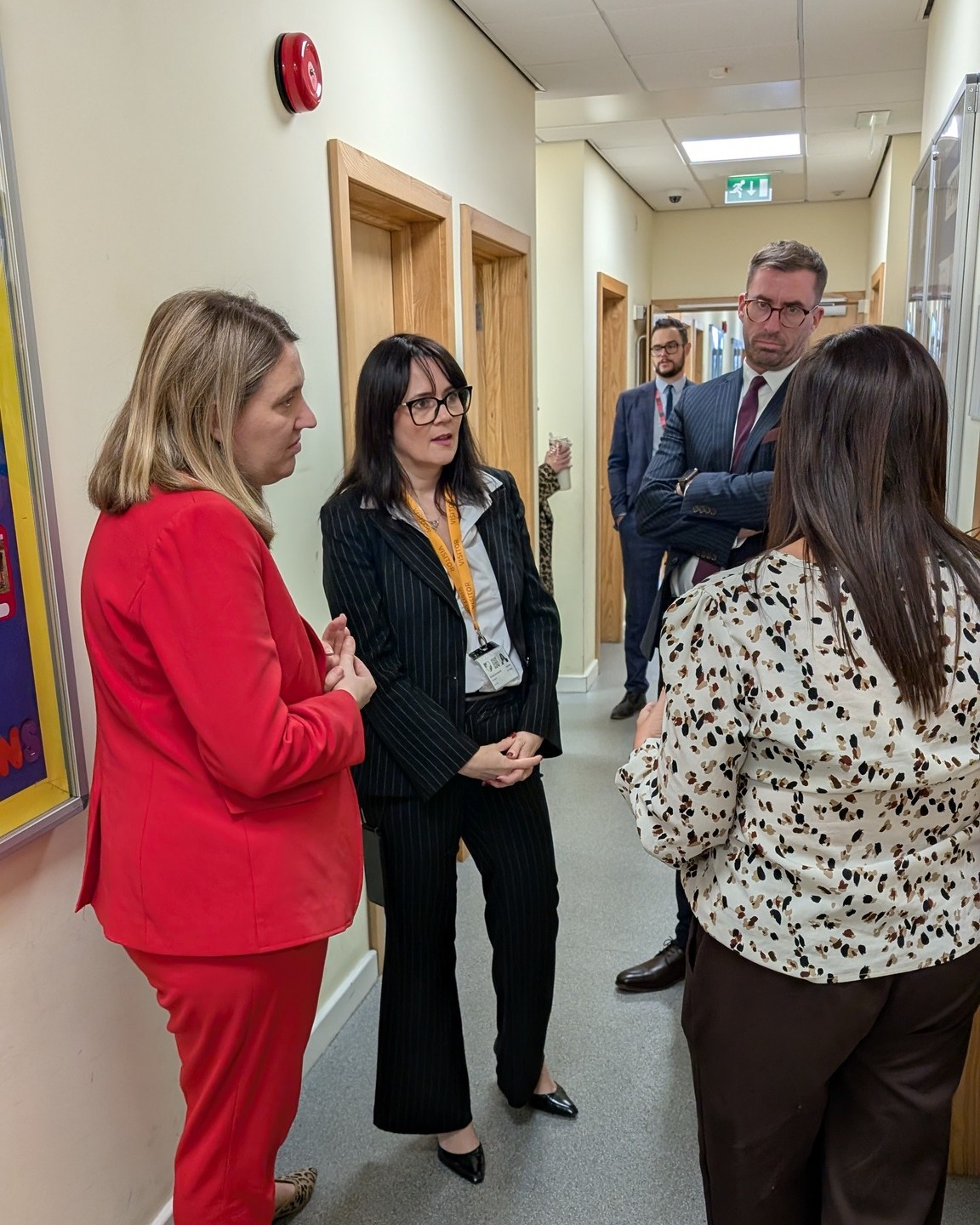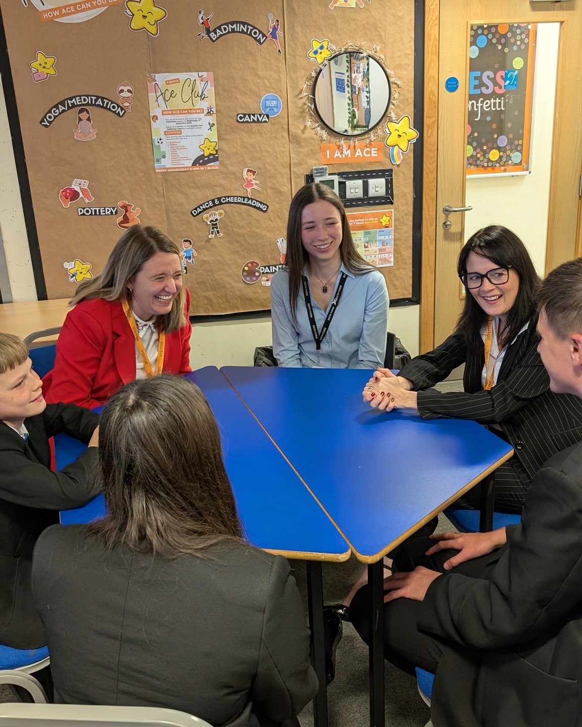 The visit began with Minister Gould and MP Linsey Farnsworth meeting school leaders and teachers to discuss how Heanor Gate is delivering targeted literacy support for Key Stage 3 students - ensuring that early reading development lays the foundation for future success. Conversations focused on identifying pupils who require additional support, and how strong literacy skills underpin progress across every subject.