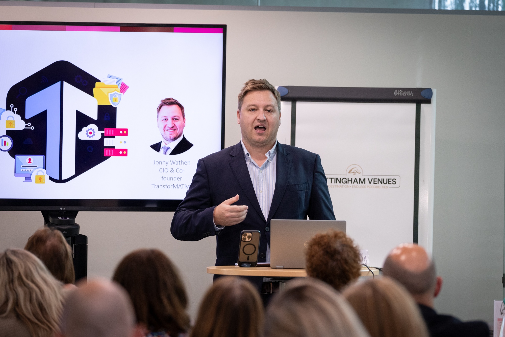 The second keynote was delivered by Jonny Wathen, CIO and Co-Founder of TransforMATive. An experienced MAT Executive and digital transformation leader, Jonny spoke on the role of AI and emerging technologies in education. His session explored how AI can be harnessed in schools to support personalised learning, streamline administrative tasks through automation, provide transcription and translation tools, aid content creation, and enhance overall support for staff and students. His insights highlighted both the opportunities and responsibilities of leveraging technology effectively in a rapidly evolving landscape.